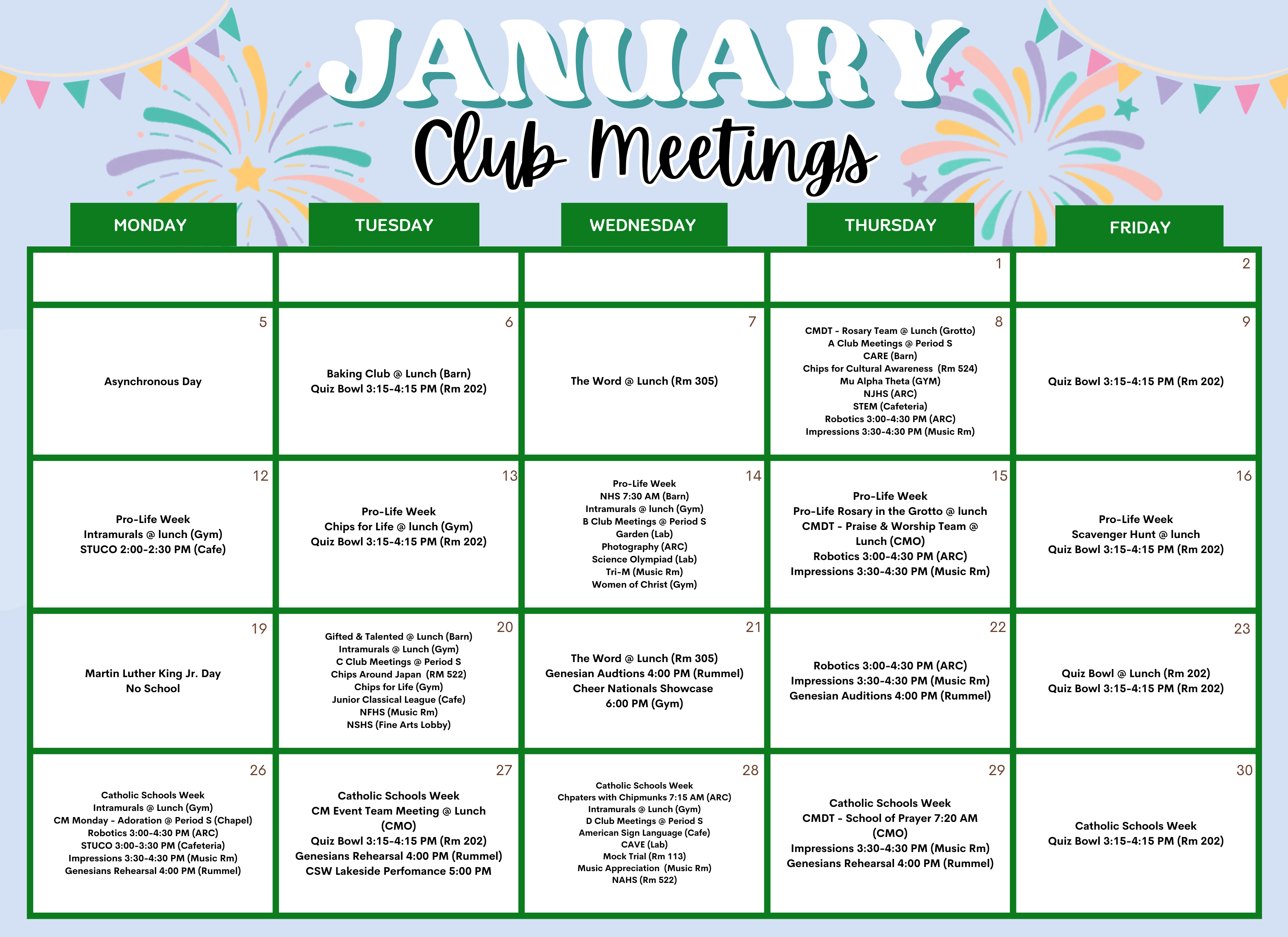 - Catholic Schools Week Lakeside Performances (Chorale, Chapellettes, Cheer & Hi-Steppers)