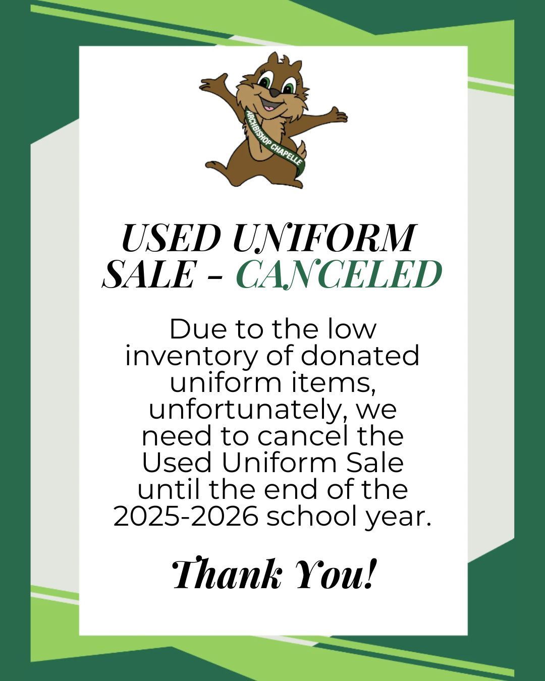 For the past several years, all students have received a Bible that is used in their Theology classes. All students were sent a google form this week asking if they need a new Bible for next school year. This is in case anyone has lost their Bible, or if their Bible has been damaged beyond repair and the students need a new one. As a reminder, the Bible is required for all Theology classes at Archbishop Chapelle High School.