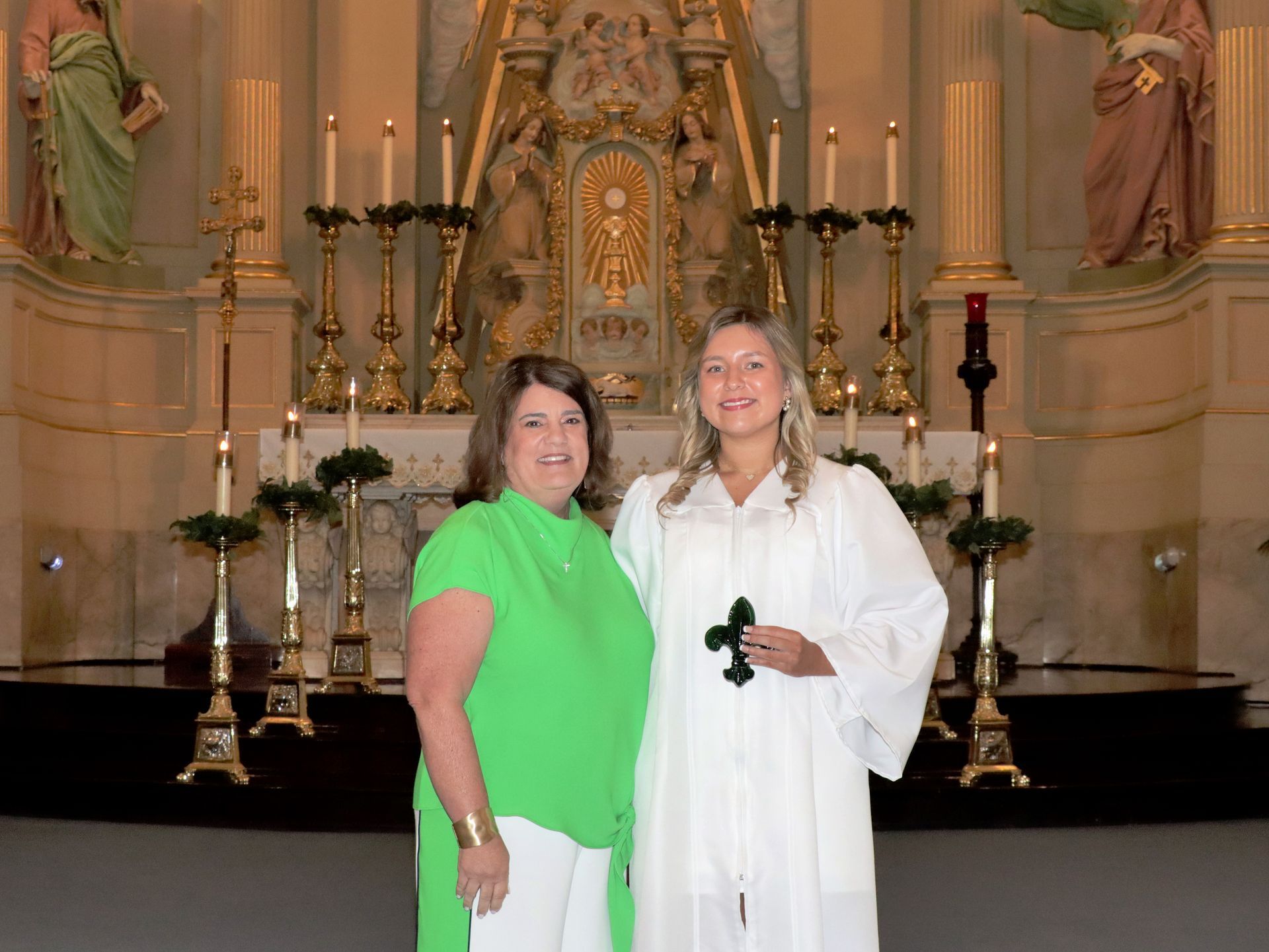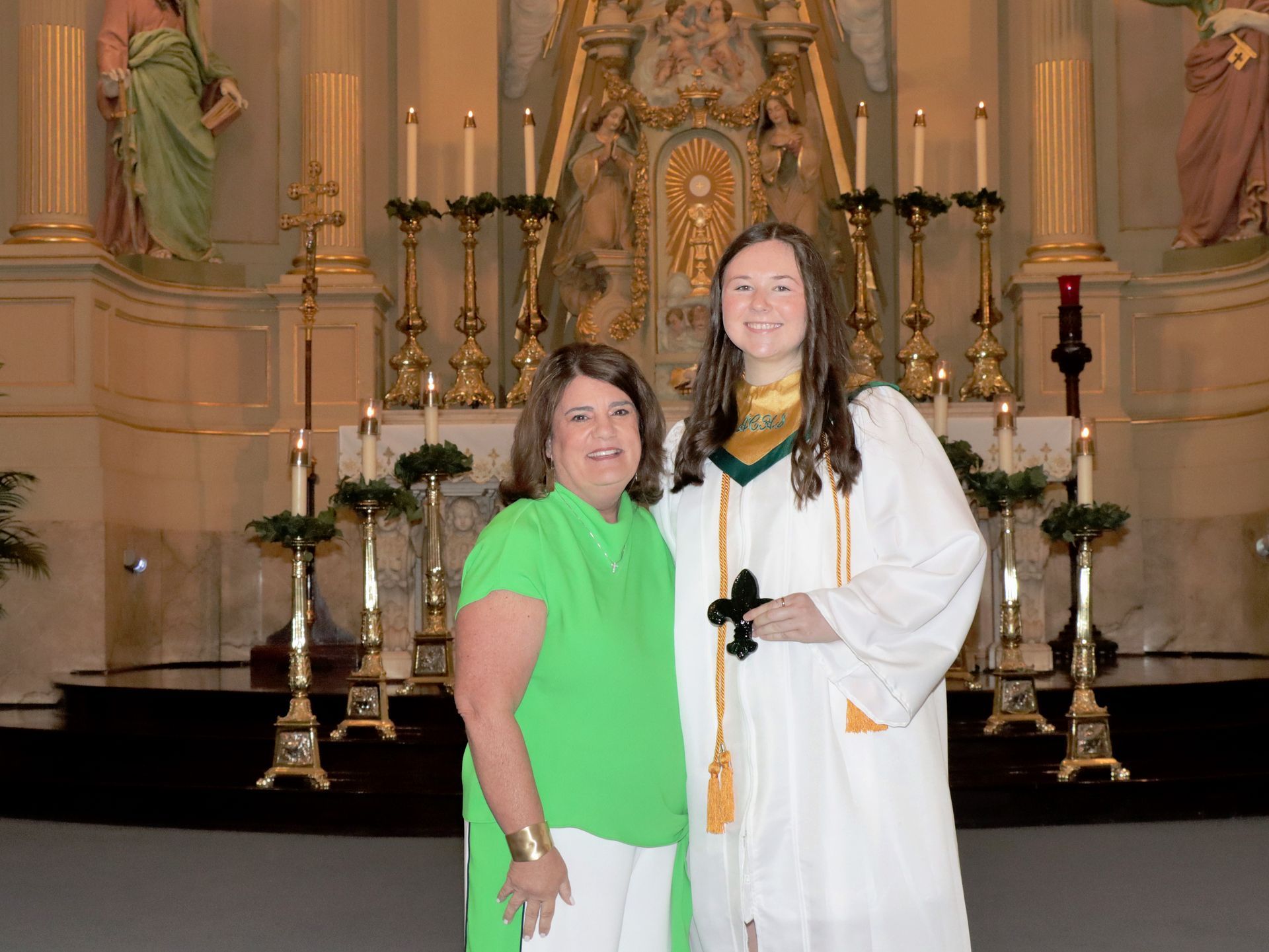 The Matthew 25 JoAnn LeCarpentier Service Award is given to a graduate for completing over 100 hours of service to the community in each of the five years at Archbishop Chapelle High School. The graduate’s name will appear on a plaque on campus and will receive a Fleur de Lis as a symbol of this achievement.