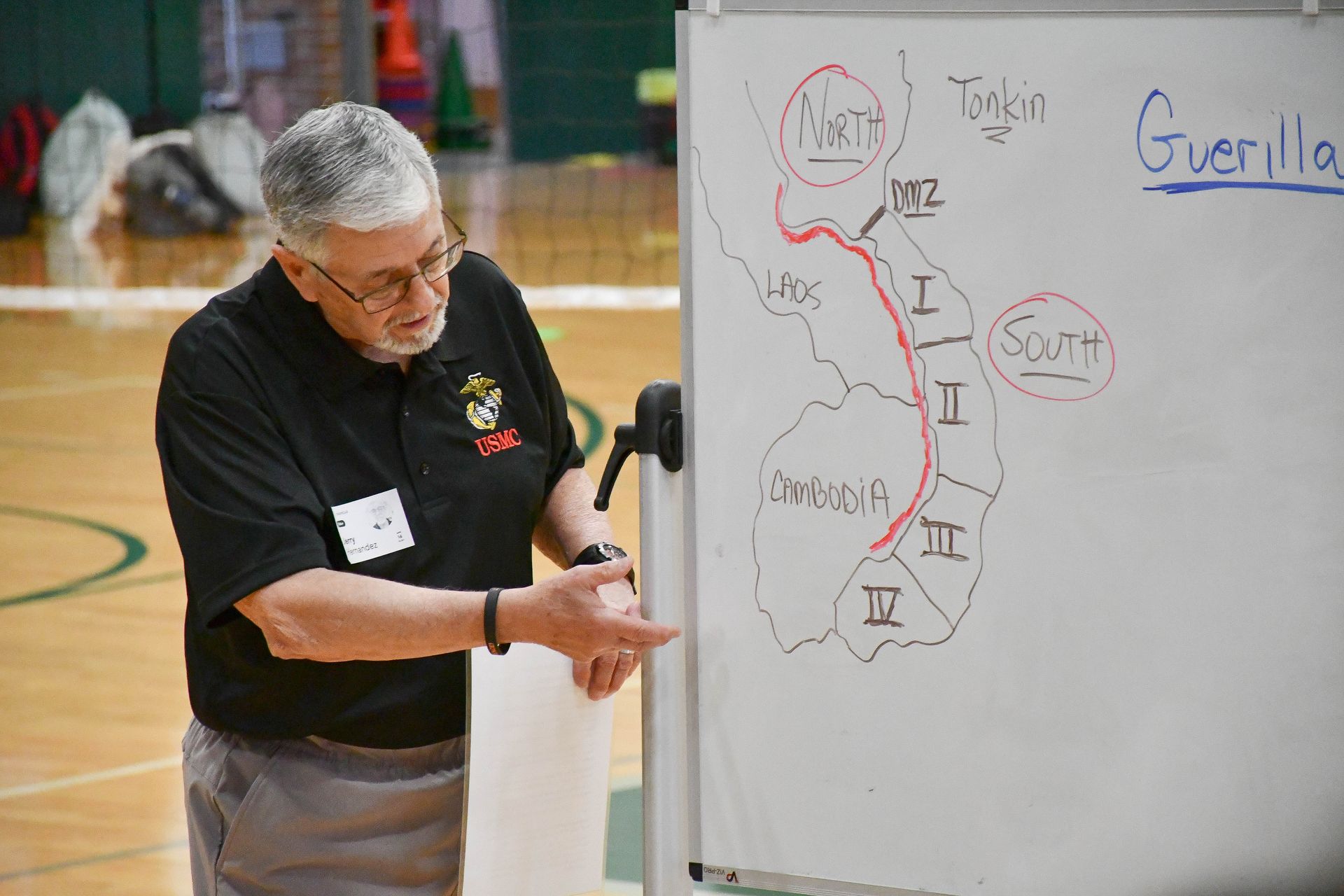 During his presentation, Mr. Hernandez shared insights into the geographical challenges of fighting in the jungles of Vietnam, explaining how terrain and climate impacted military strategy and daily life for soldiers. He also discussed the guerrilla warfare tactics used by the North Vietnamese Army, helping students better understand the complexity of the conflict.